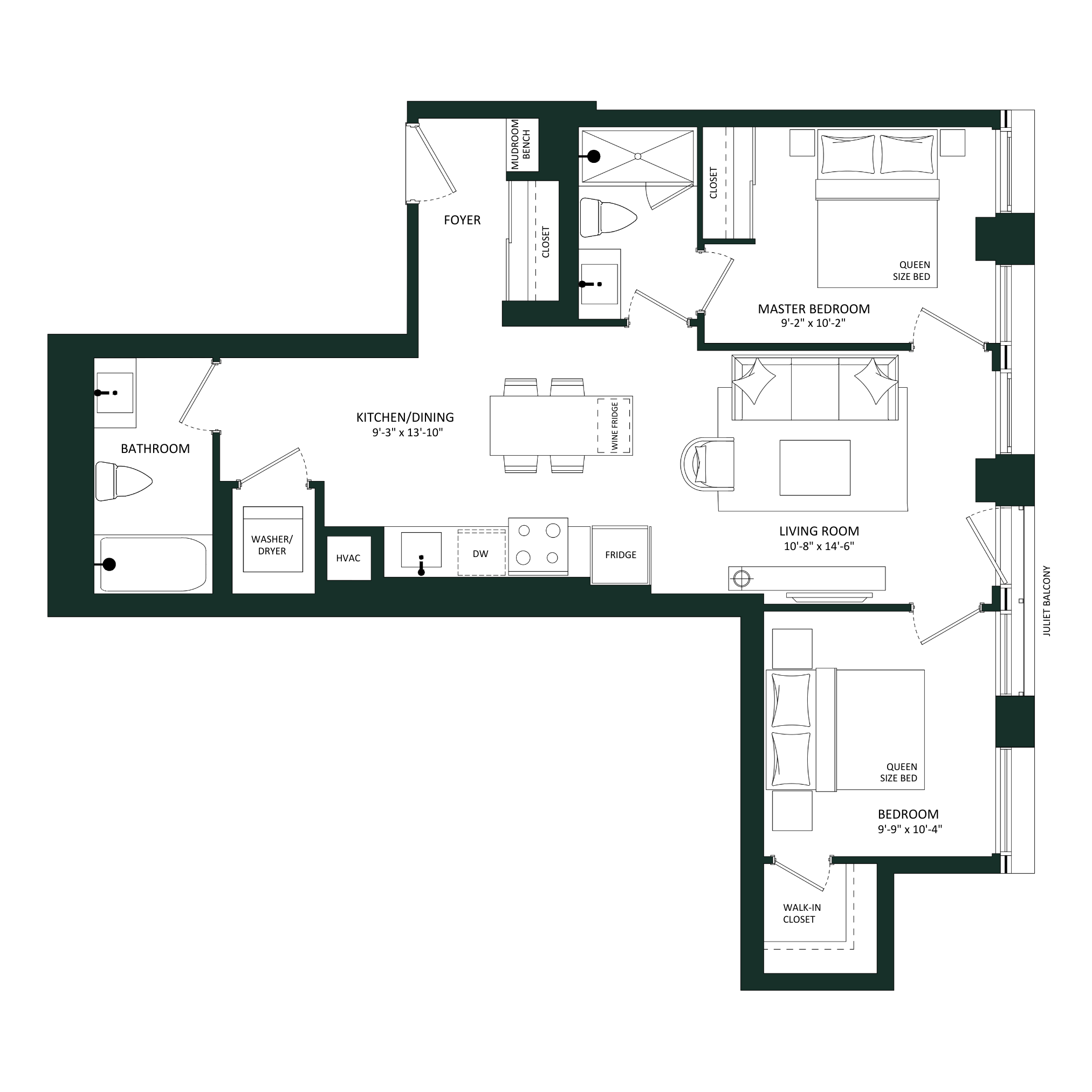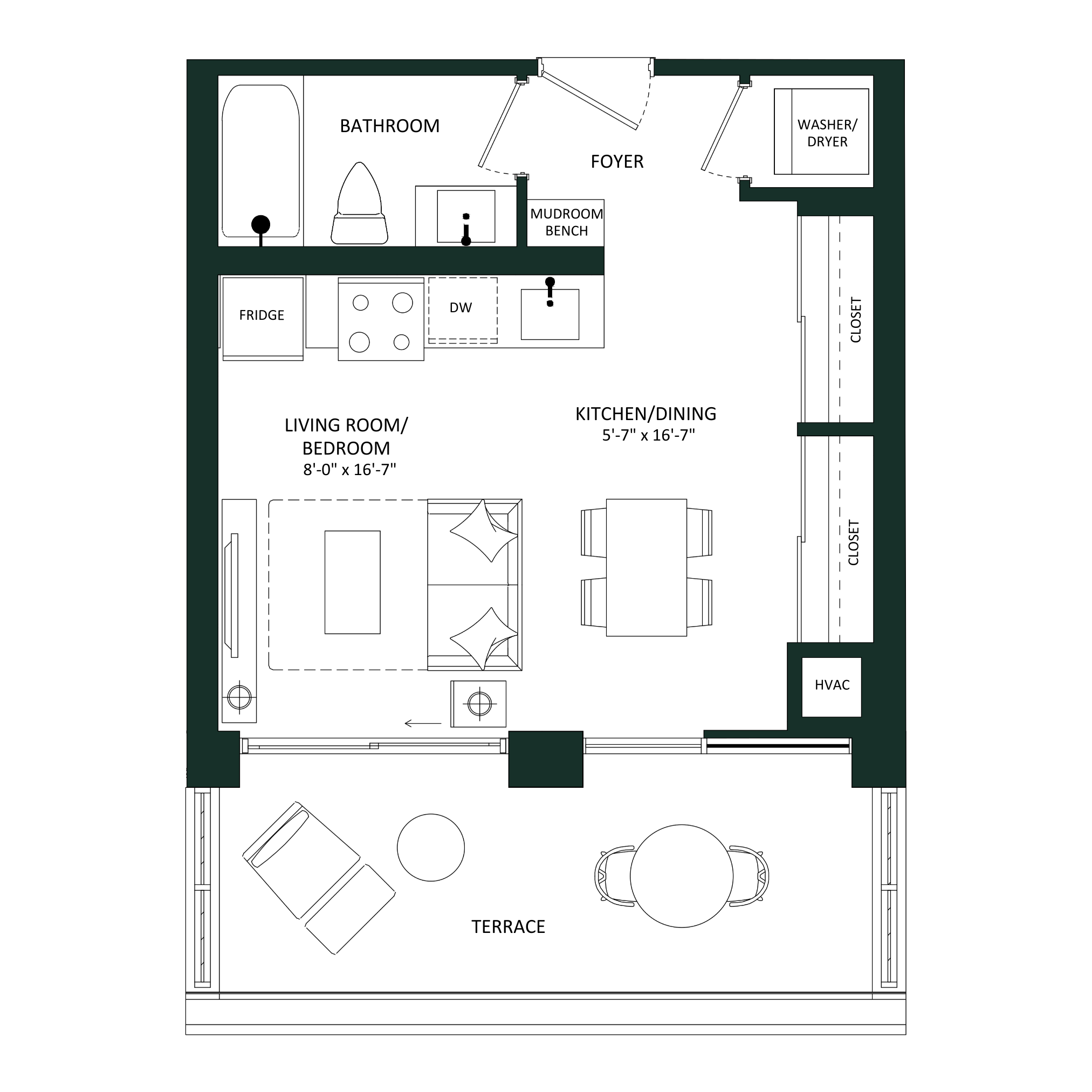 All suite types are available fully furnished for an additional monthly premium upon request. Please inquire about the specific furnishing packages available for your preferred suite type.