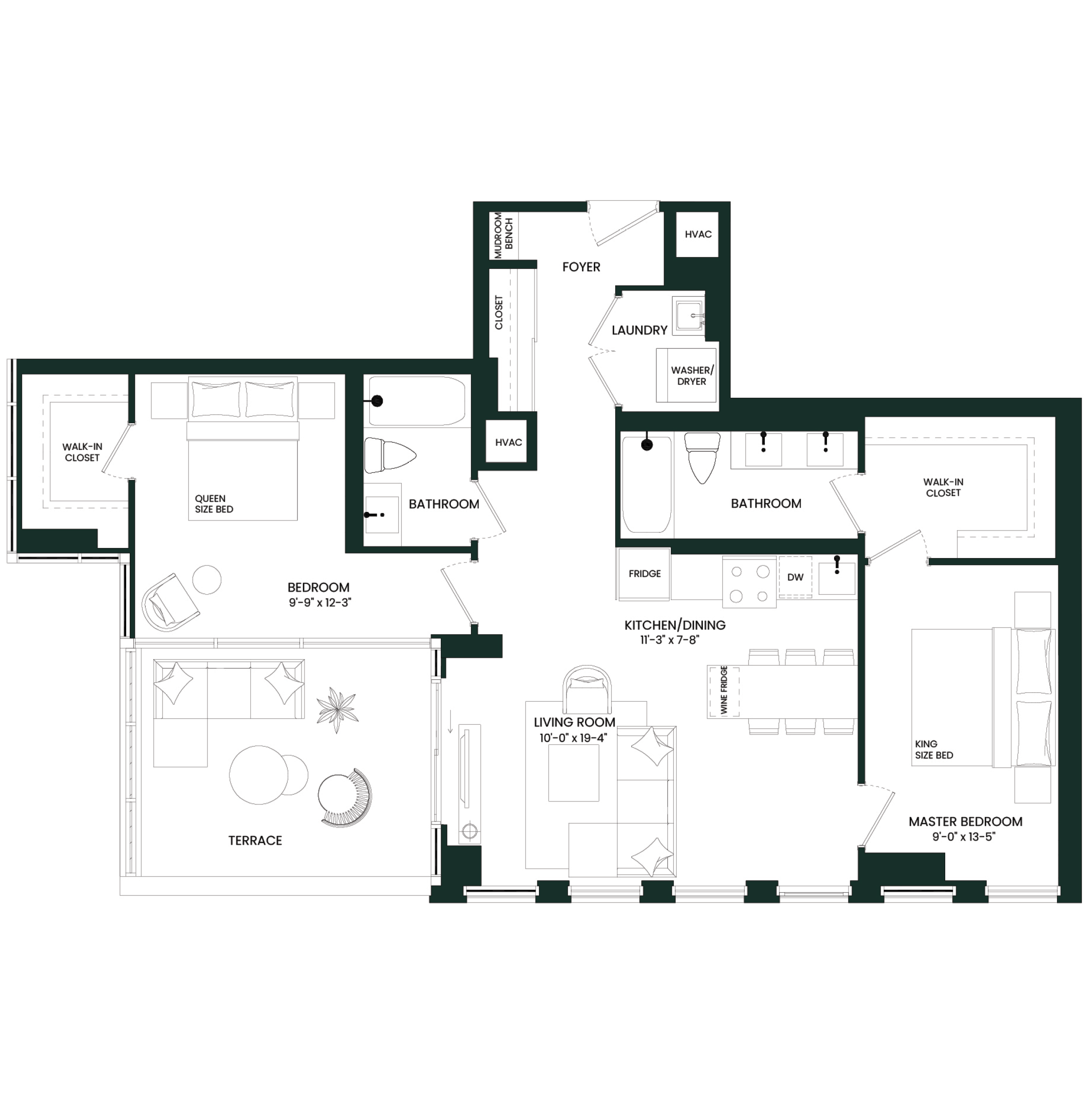 - In-Suite Full-Size Washer / Dryer